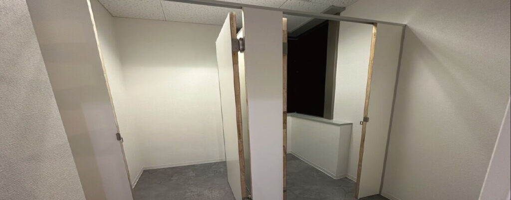 個室の更衣室がございます。レッスンは動きやすい格好で、着てきていただいても、スタジオでお着替えいただいても大丈夫です。